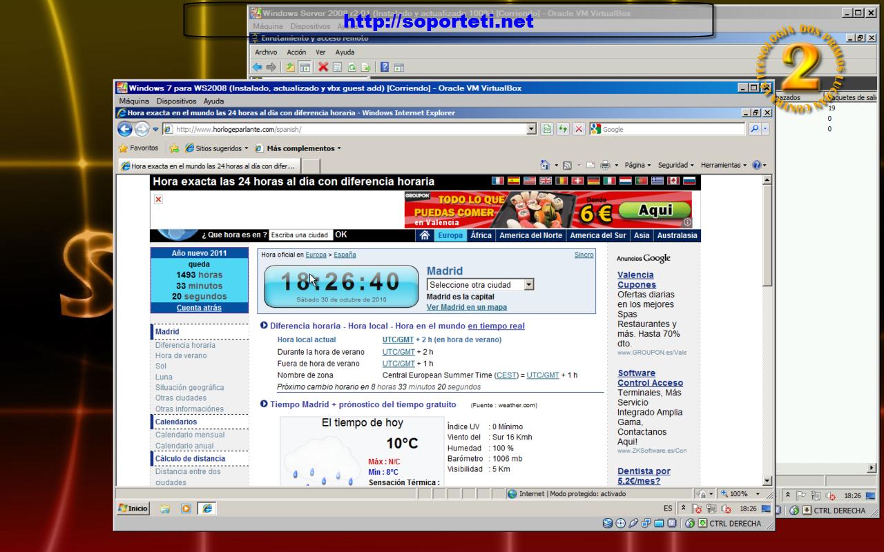 En esta ocasión vemos una imagen que muestra como uno de los equipos clientes esta accediendo a Internet haciendo uso del NAT del servidor.