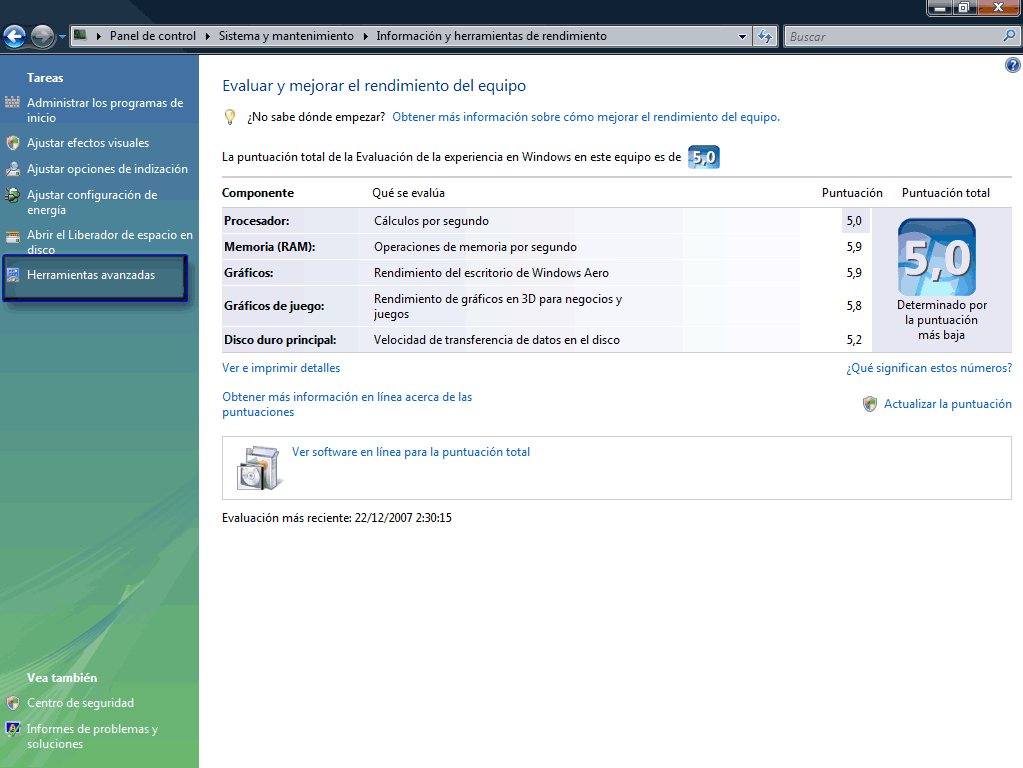 Y bueno, eso es todo lo que nos va a decir Windows Vista de nuestros sistemas que como podeis comprobar es una información muy completa e interesante y que pasando la herramienta cada dos o tres meses (según el uso, yo hablo por mi) nos vamos a evitar muchisimos probelmas con el sistema.