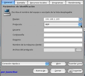 Ahora sí nos metemos en este potente protocolo. Como dice su nombre RDP (Remote Desktop Protocol-Protocolo de escritorio remoto) es un protocolo desarrolado por Microsoft, basado en T.120 y que nos permite acceder a un escritorio desde un punto distante o incluso, dentro de nuestra red, formando un entorno Server-Cliente.